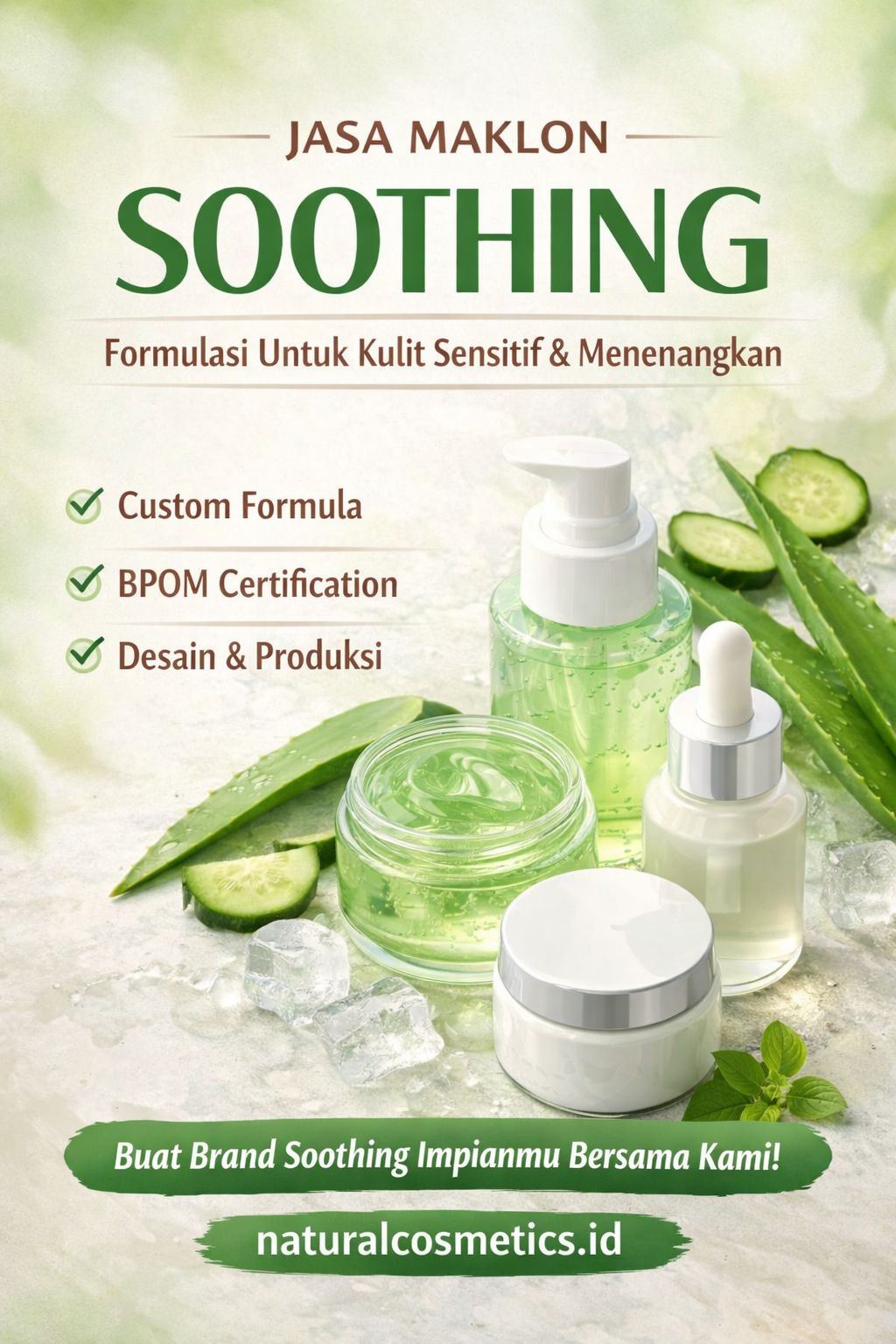 Memulai bisnis kecantikan dengan produk skincare yang spesifik dan efektif adalah strategi bisnis yang brilian. Dengan memanfaatkan jasa maklon Soothing gel, Anda telah memangkas puluhan hambatan operasional dan bisa langsung terjun ke pasar dengan produk berkualitas tinggi.